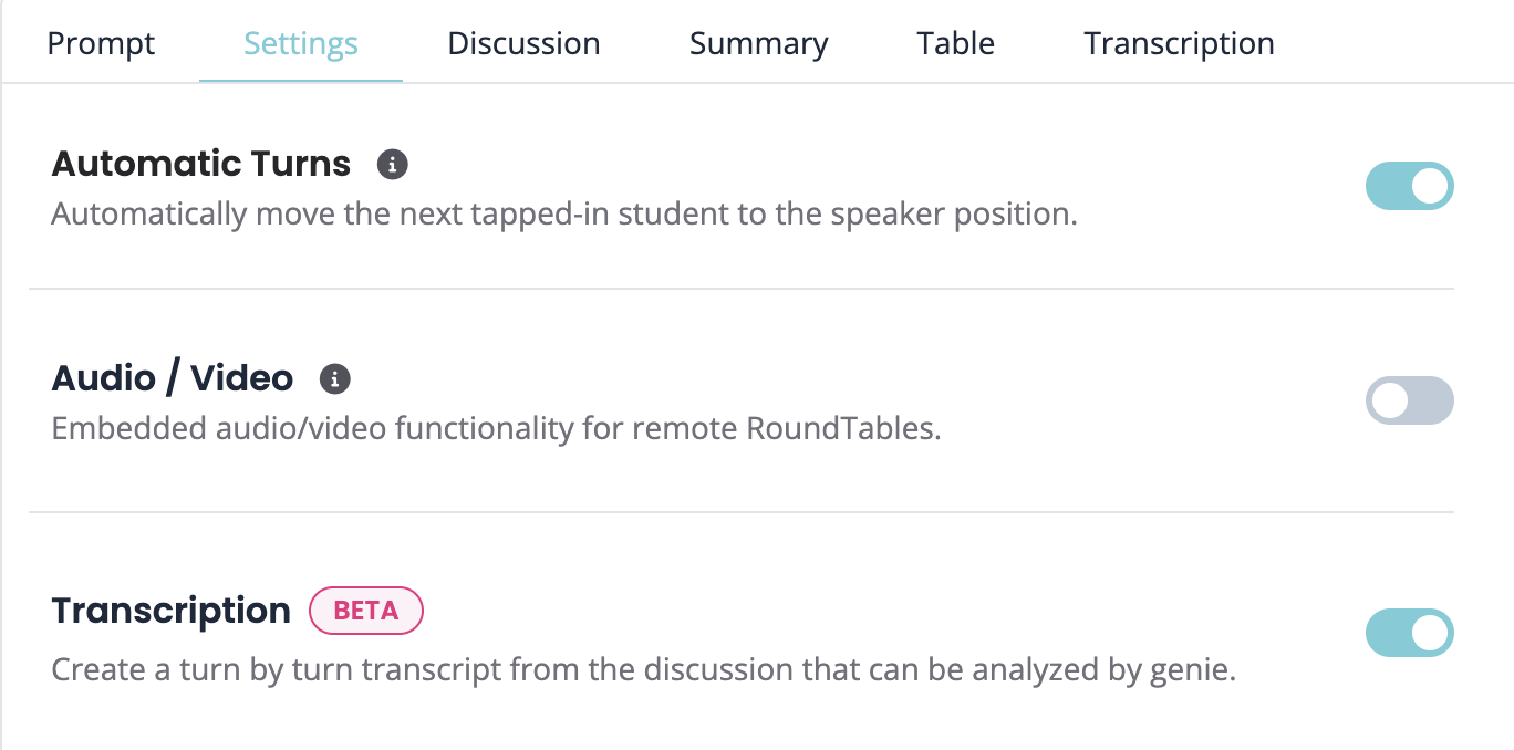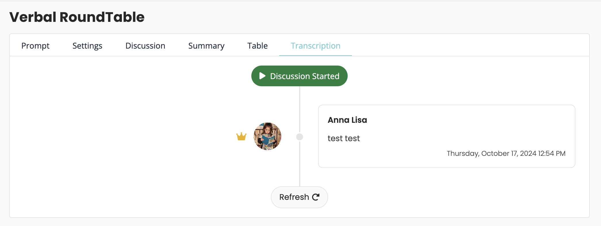 In a Verbal RoundTable, you can enable transcription to capture a turn-by-turn text record of the conversation, whether it's happening in person or online.