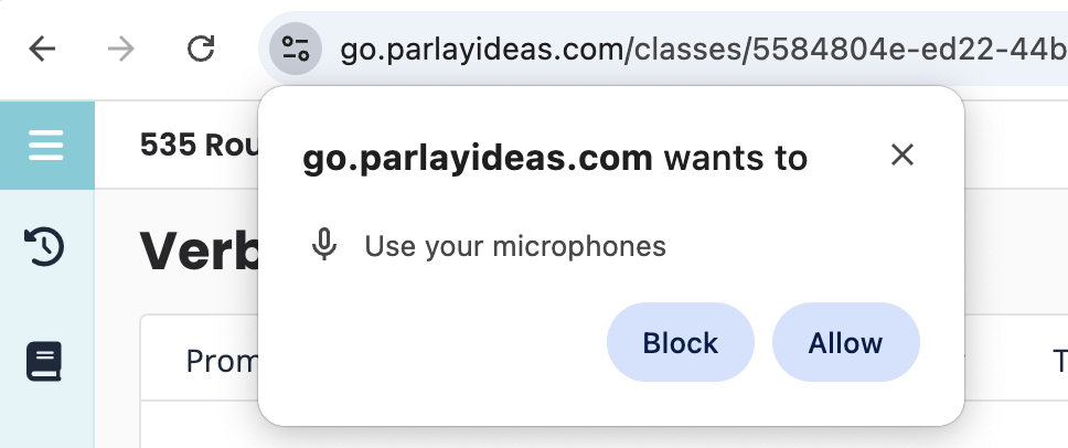 2. When you click tap in for the first time, your browser will ask you to allow microphone access. Click allow. (This will happen for students too!)