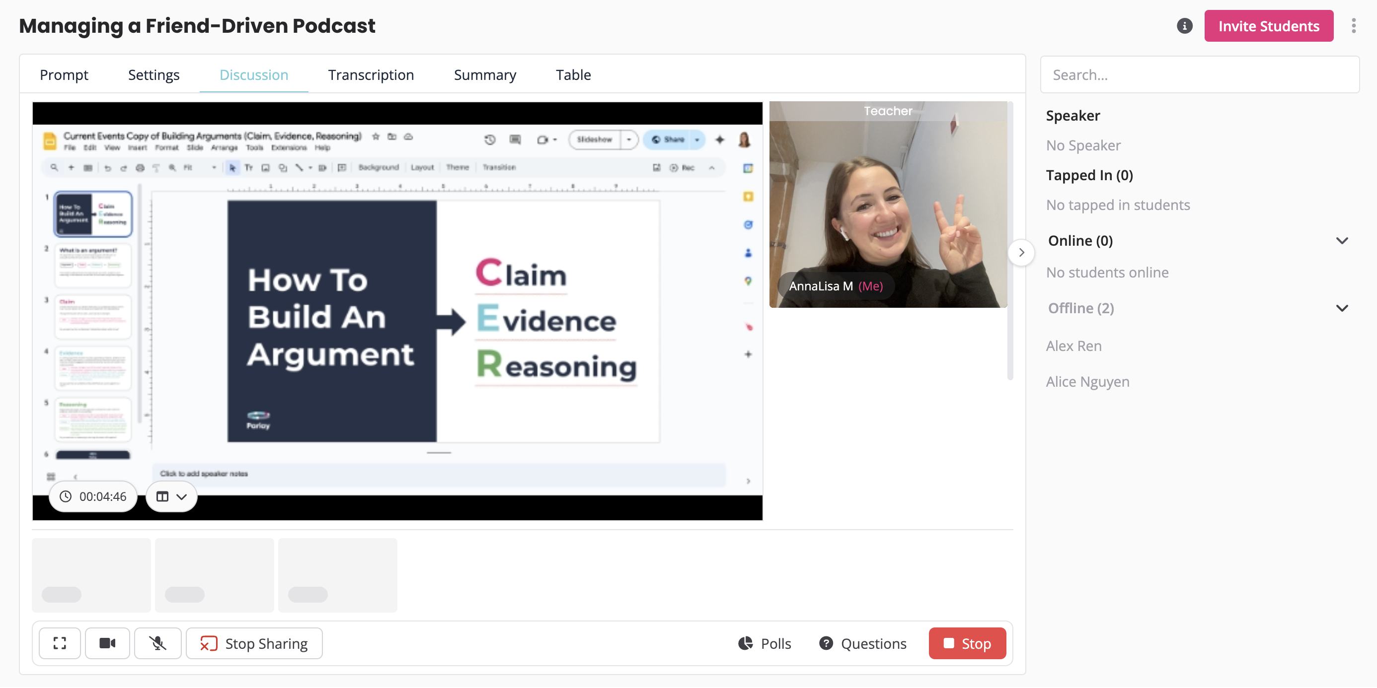 Sharing your screen in a Verbal RoundTable can help focus your class on a resource that you'll be discussing during a virtual discussion. Perhaps you want to show a visual of a concept or read through an article as a group!