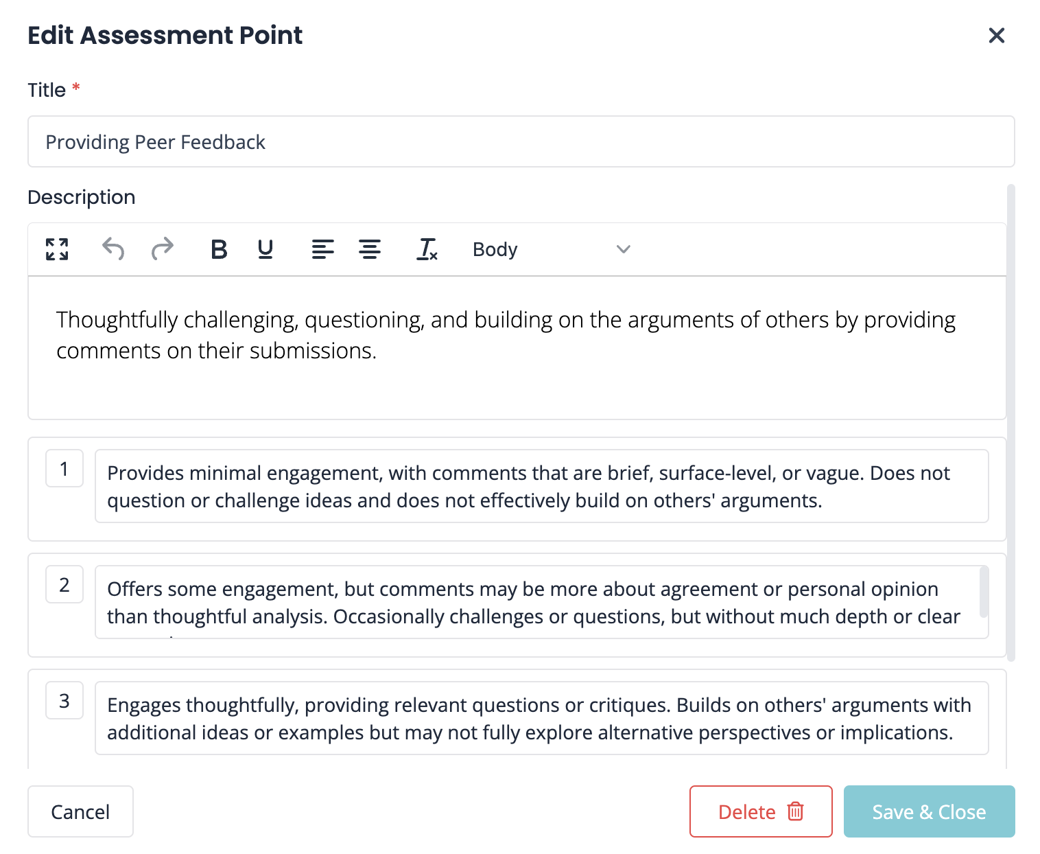 3. You can set a Maximum Score for each criteria if you plan on assessing with a rubric.