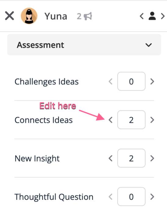Note: Typically, teachers complete the feedback and assessment component at a later time. This gives them the chance to review the engagement data and notes.